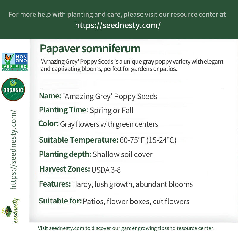 'Amazing Grey' Poppy Seeds - Hardy, lush growth, abundant blooms