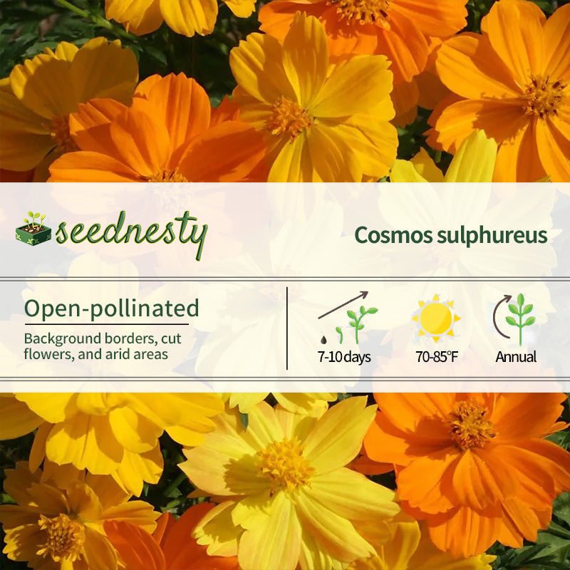 'Bright Lights' Cosmos - Heat and drought tolerant, flame-shaped flowers attract hummingbirds