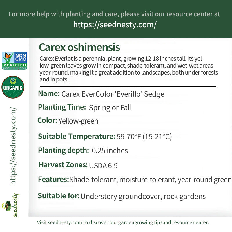 Carx Everlot is a vibrant colorist in shade-tolerant environments. Growing in clumps, the perennial plant reaches 12-18 inches tall, boasting slender, linear leaves that gradually transition from a dark green at the base to a bright golden yellow at the tip, resembling a "flame on a green candlestick." This gradient is natural and lasts throughout the year, with no noticeable fading. Its soft, dense leaves form a uniform groundcover, leaving a smooth, clean, and uncluttered surface. This variety is exceptionally shade-tolerant, maintaining its golden color even in diffused light under forests. It also tolerates moist soils and can be planted near water. It also tolerates mild drought and has a low soil requirement. It is suitable for planting in forest clearings, in the shade of buildings, in rock garden crevices, or indoors in a potted area with diffused light.