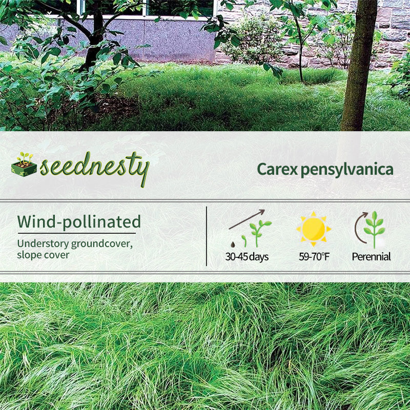 Carex pensylvanica is a high-quality ground cover alternative to traditional lawns. As a perennial herb, it grows only 6-12 inches tall, with slender, linear green leaves that are soft, moss-like in texture. It forms a dense, even ground cover, creating a smooth, clean, and visually tidy surface. Its greatest strength is its strong shade tolerance, allowing it to thrive even in diffuse light under forests. It is also drought-tolerant and infertile, requiring no frequent mowing or irrigation, eliminating the maintenance hassles of traditional lawns. The leaves remain dark green year-round. Although they briefly dormant in winter, they quickly return to green in early spring.