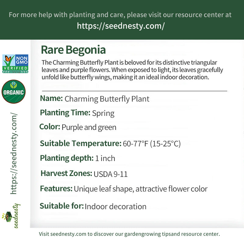 Under sunlight, the Charming Butterfly Plant's leaves gracefully unfold, resembling fluttering butterflies. Its purple flowers, like stars dotted against its green leaves, evoke a sense of tranquility and beauty. Whether placed on a desk or windowsill, it adds a touch of nature to your life. Its easy care and adaptability make it a favorite plant in your home, a companion for every beautiful moment.