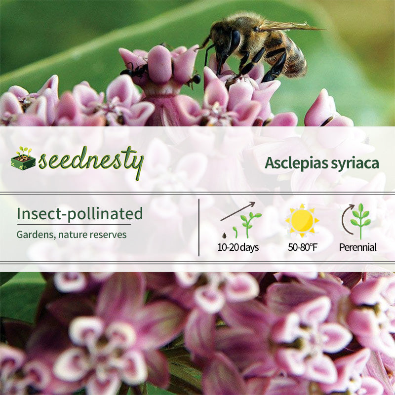 Common Milkweed is a perennial herbaceous plant that grows 24-40 inches tall. Its broad leaves give it a spacious, airy appearance. Its distinctive pink, star-shaped flowers are clustered together, small and delicate, forming beautiful clusters. It plays a vital role in the ecosystem, providing an essential source of food and habitat for monarch butterflies and their larvae. It also provides pollen and nectar for other pollinators, such as bees. Suitable for planting in gardens and nature reserves, it not only offers ornamental value but also contributes to ecological conservation.