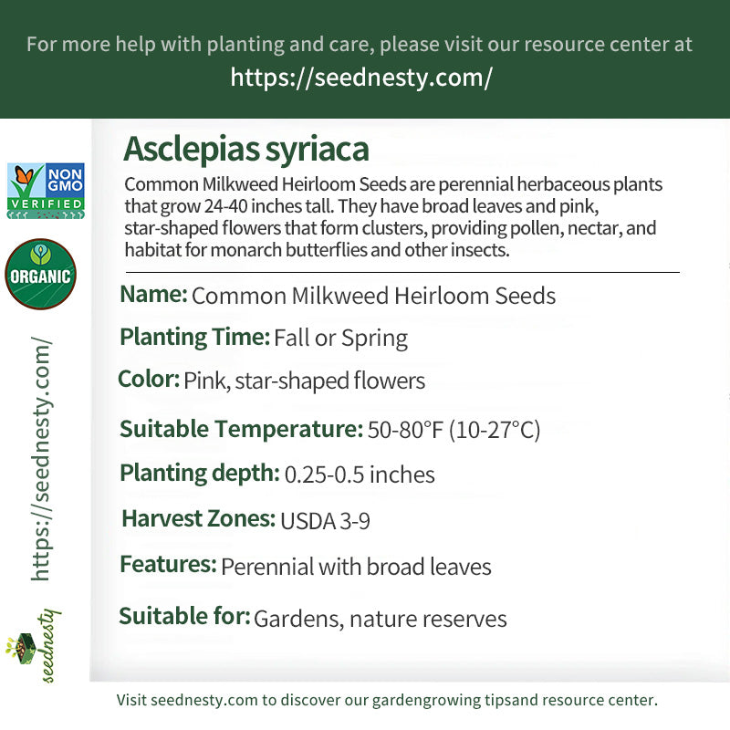 Common Milkweed Heirloom - Unique star-shaped flowers, Heirloom seeds
