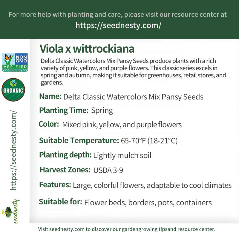 Delta Classic Watercolors Mix Pansy Seeds - Large, colorful flowers, adaptable to cool climates