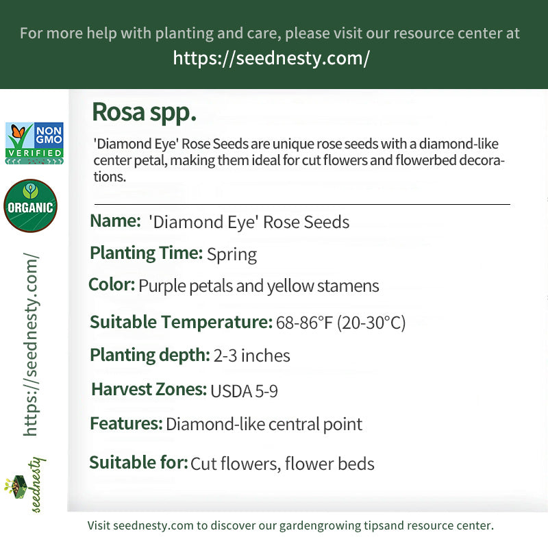 On sunny days, 'Diamond Eye' Rose Seeds quietly sprout, eagerly anticipating their bloom. Over time, the seedlings grow strong, blossoming into unique flowers with a central center like a dazzling diamond, captivating all lovers of beauty. Each flower exudes a delicate fragrance, whispering a sweet message. 'Diamond Eye' roses are not only a decorative addition to your garden, but also a perfect way to express affection and well-wishes. Their beauty and uniqueness make them the stars of your flowerbed, often the centerpiece of gatherings and celebrations. Seeing these flowers in bloom brings a sense of beauty and warmth to your heart, as if each blossom is a celebration of life itself.