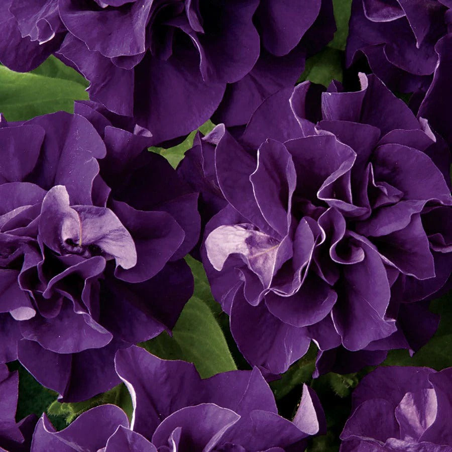 Double Cascade Blue Double Petunia seeds produce compact, well-branched plants with carnation-like, deep purple double flowers 3-3.5 inches in diameter. These petunias bloom earlier than older, larger double petunias and can withstand inclement weather. This variety is suitable for planting as an annual in spring. It prefers full sun and ideal growing temperatures of 65-70°F during the day and 60-65°F at night. Germination time is 7-12 days.