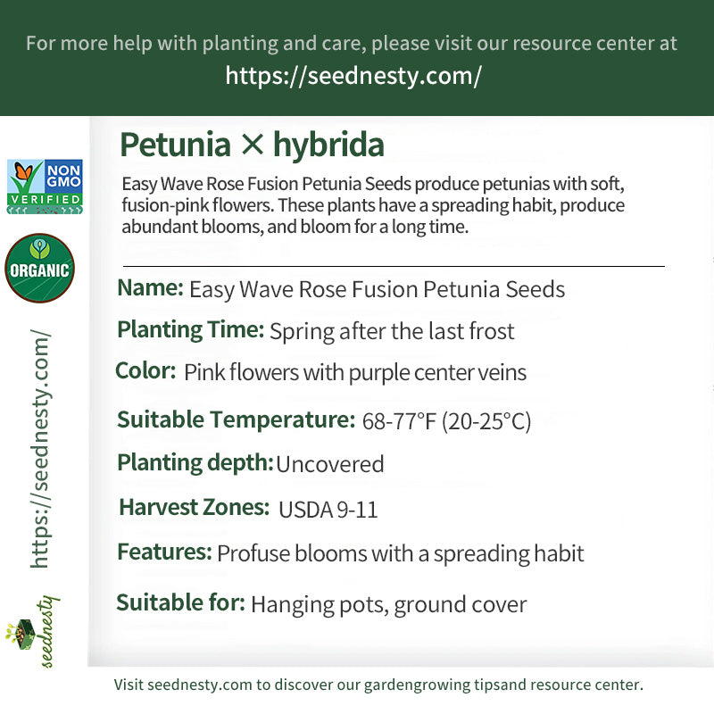 Easy Wave Rose Fusion Petunia Seeds - Profuse blooms with a spreading habit