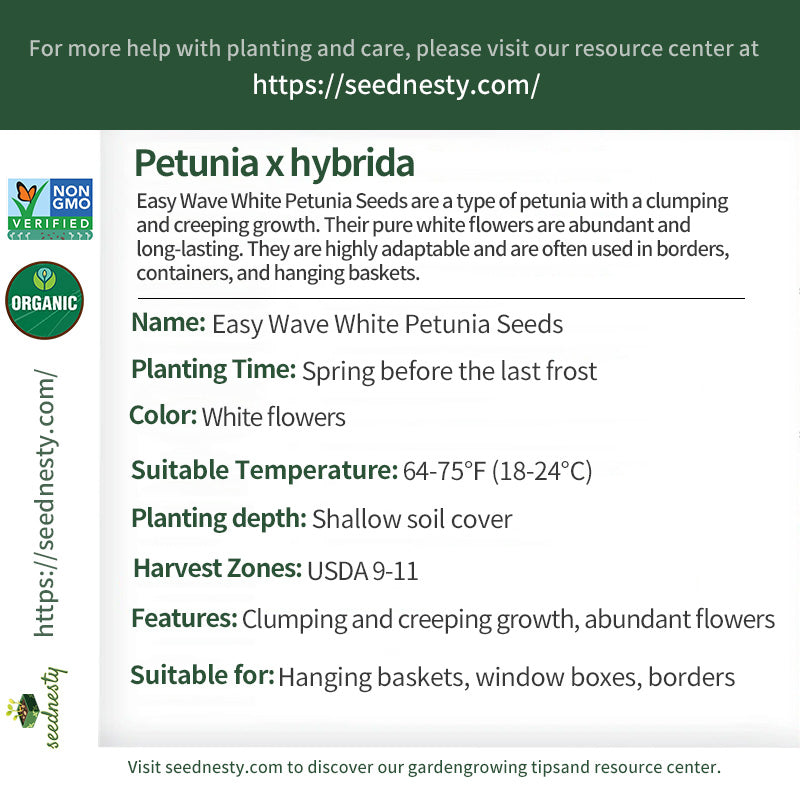 Easy Wave White Petunia Seeds- Clumping and creeping growth, abundant flowers
