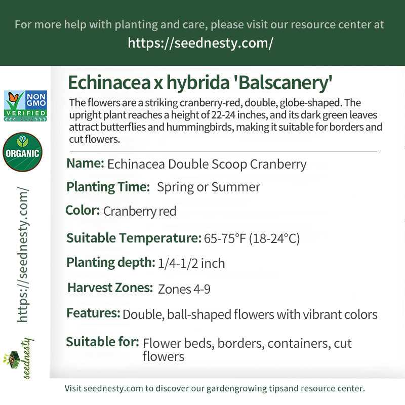 In the garden of a nature-loving painter, he was searching for a flower that would inspire his paintings. When he discovered the Echinacea Double Scoop Cranberry, he was immediately captivated by its cranberry-red, double flowers. He planted the seeds and carefully tended them. The plant grew into a sturdy, upright plant, its bright flowers framed by its dark green leaves. When it bloomed, the garden looked like countless red gems, attracting butterflies and hummingbirds. Sitting in the garden, the painter used these beautiful flowers as models to create many moving paintings.