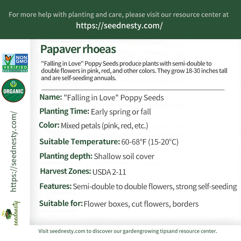 "Falling in Love" Poppy Seeds - Semi-double to double flowers, strong self-seeding