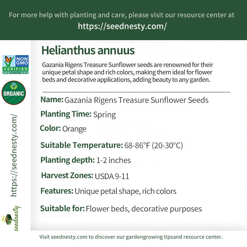 On a warm spring day, seeds of Gazania Rigens Treasure Sunflower seeds were sown in the garden. Over time, the unique petals and vibrant colors gradually blossomed, creating a beautiful sea of flowers. These flowers attracted countless bees and butterflies, filling the garden with life. Neighbors were often drawn to these captivating plants, flocking to admire them, while children played among the blossoms, enjoying the joy of nature. Whenever the flowers bloomed, homes were filled with joy and laughter, becoming a haven for the soul. Gazania Rigens Treasure is more than just a plant; it symbolizes preciousness and beauty, inspiring people to pursue the art of living.