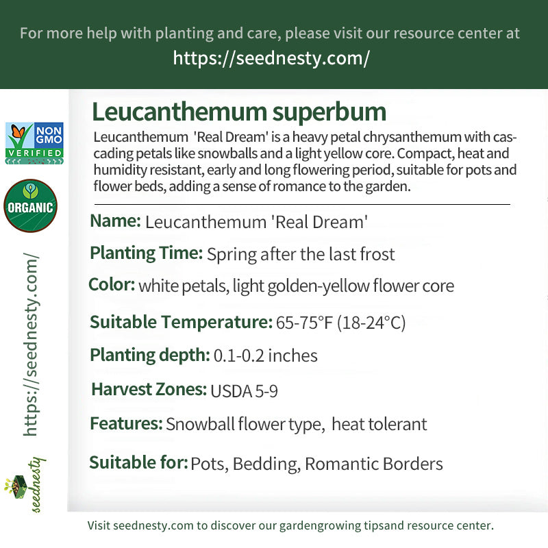 Leucanthemum 'Real Dream' Seeds - Snowball flower type,  heat tolerant