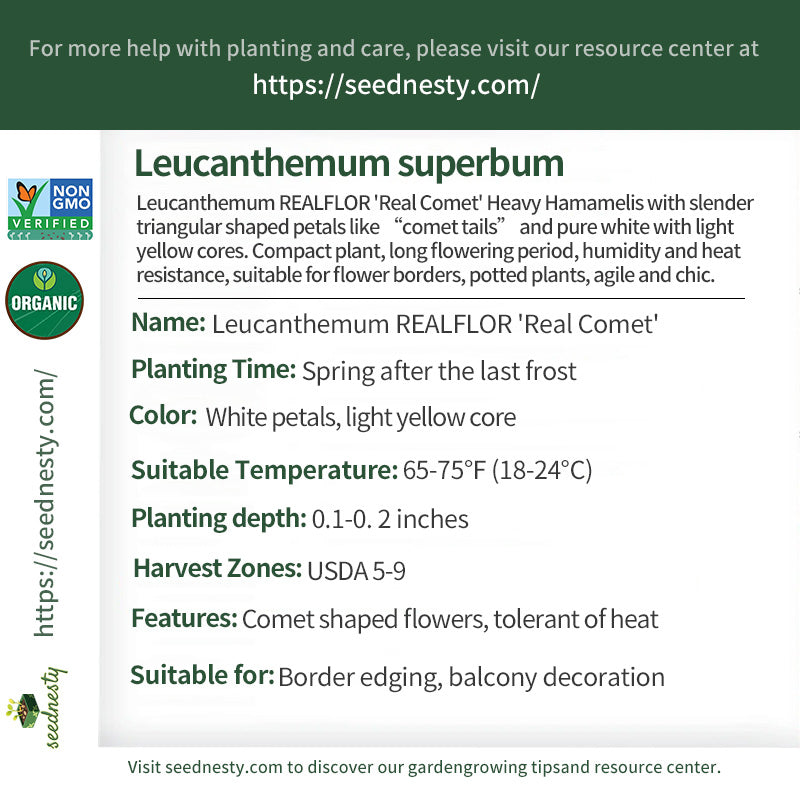 Leucanthemum REALFLOR 'Real Comet' Seeds - Comet shaped flowers, tolerant of heat