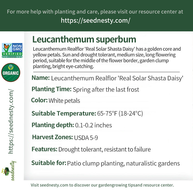 Leucanthemum Realflor 'Real  Solar Shasta Daisy' Seeds - Drought tolerant, resistant to failure