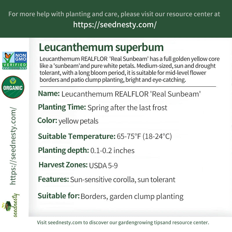 Leucanthemum Realflor 'Real Sunbeam' Seeds - Sun-sensitive corolla, sun tolerant