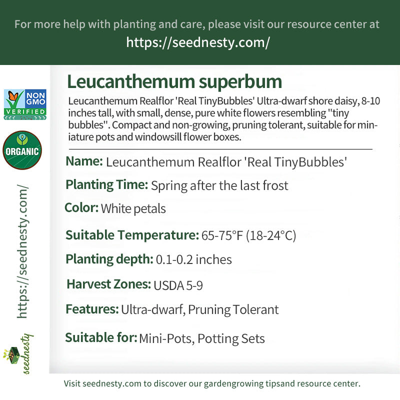 Leucanthemum Realflor 'Real TinyBubbles' Seeds - Ultra-dwarf, Pruning Tolerant