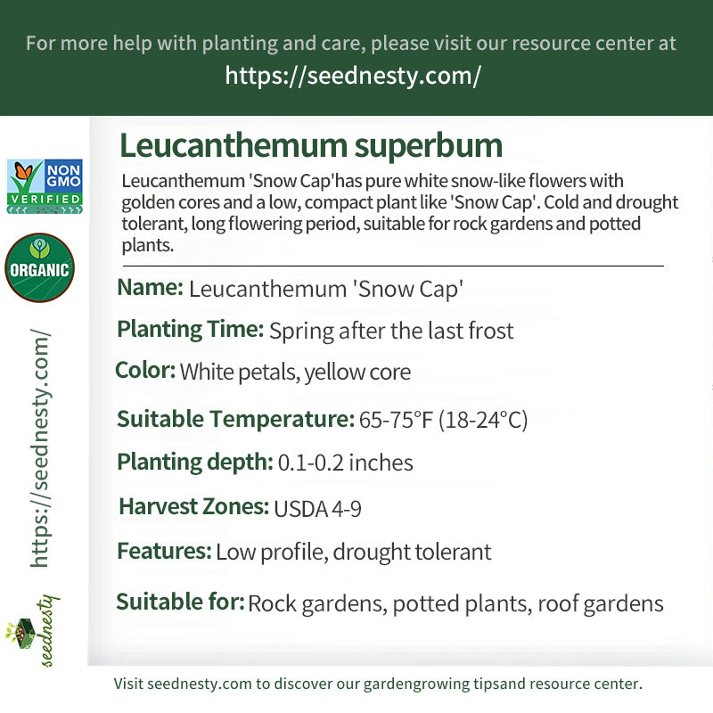 Leucanthemum 'Snow Cap' Seeds - Low profile, drought tolerant