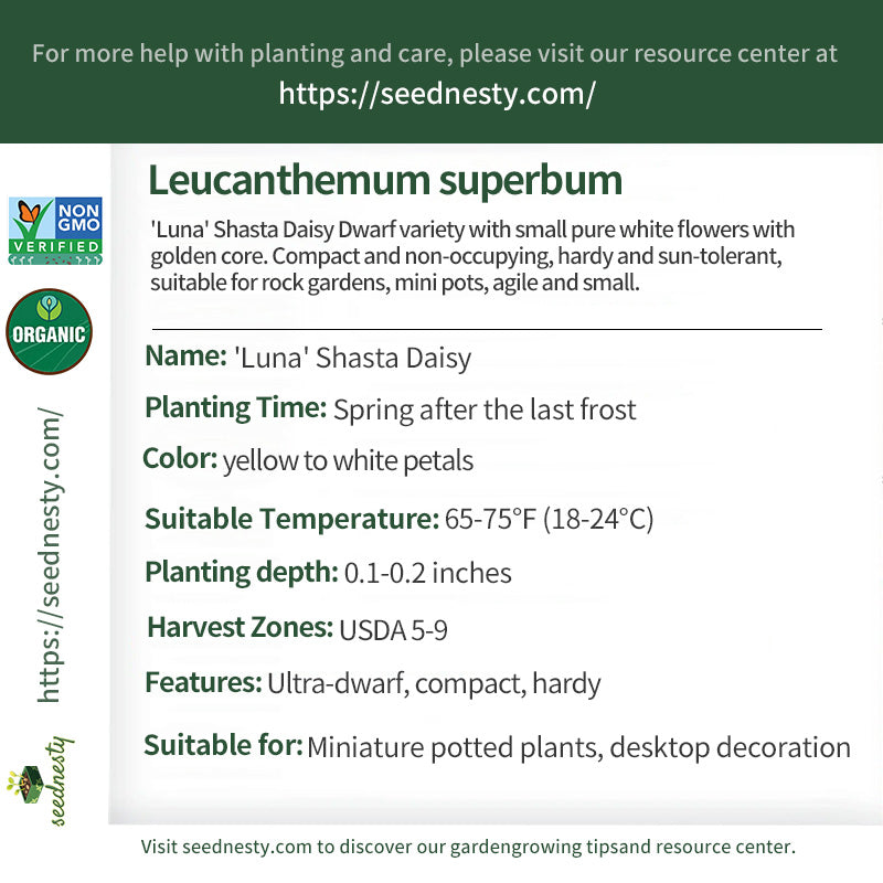 'Luna' Shasta Daisy Seeds - Ultra-dwarf, compact, hardy