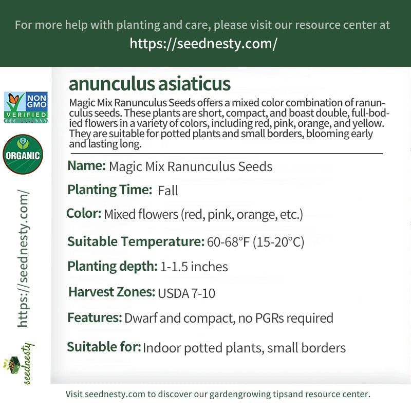 Magic Mix Ranunculus Seeds - Dwarf and compact, no PGRs required