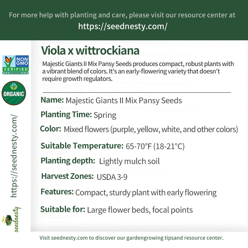 Majestic Giants II Mix Pansy Seeds - Compact, sturdy plant with early flowering