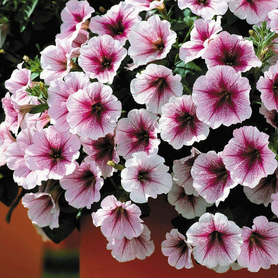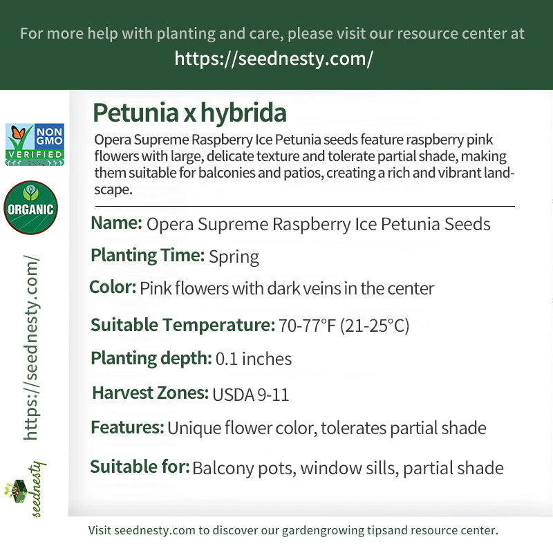 Opera Supreme Raspberry Ice Petunia Seeds - Unique flower color, tolerates partial shade