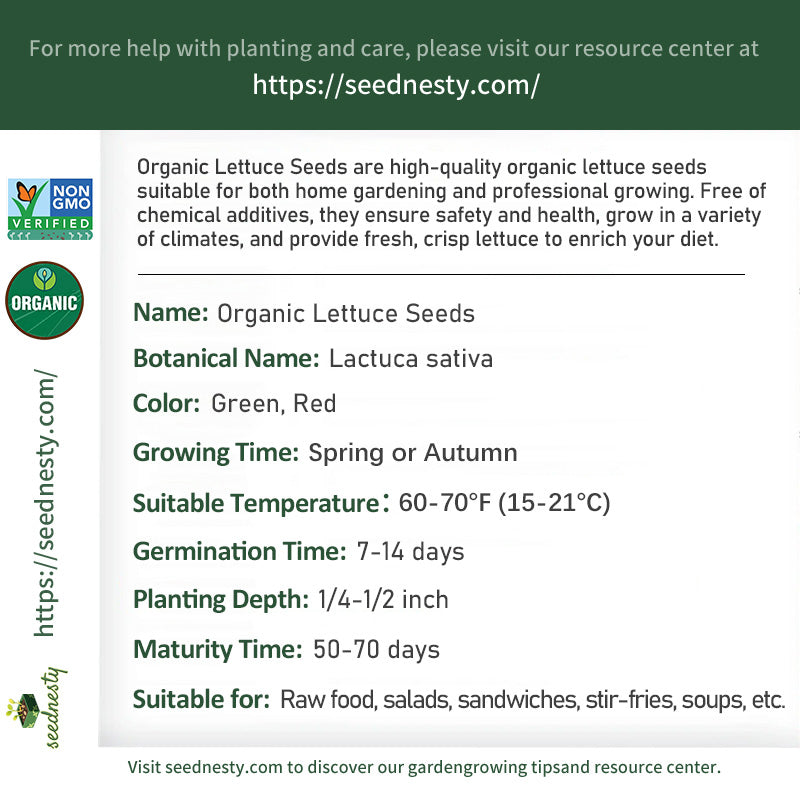 Organic Lettuce Seeds are high-quality organic lettuce seeds suitable for both home gardening and professional growing. Free of chemical additives, they ensure safety and health, grow in a variety of climates, and provide fresh, crisp lettuce to enrich your diet.