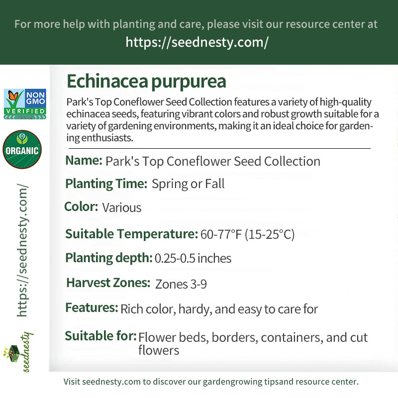 Park's Top Coneflower Seed Collection is like a dream garden combo. When you sow these seeds, you embark on an adventure of color and surprise. Mellow Yellows' gentle yellow flowers are as warm as sunshine, White Swan's pure white flowers are as elegant as fairies, PowWow Wild Berry's berry-colored flowers resemble mysterious gemstones, and Green Twister's multicolored petals resemble playful elves. Together, they create a beautiful symphony in your garden, bringing endless vitality and vibrancy to your landscape.