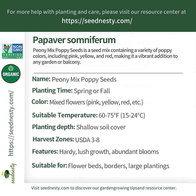 Peony Mix Poppy Seeds - Hardy, lush growth, abundant blooms
