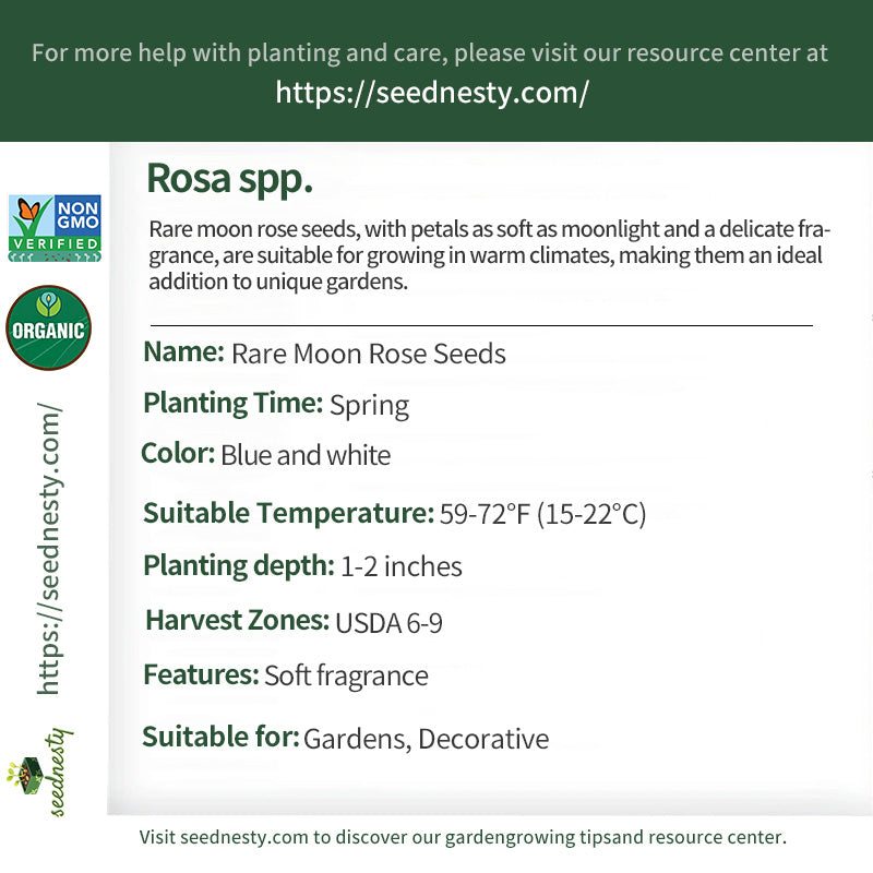 On moonlit nights, rare moon rose seeds shimmer in the darkness. Each seed is like a star in the night sky, waiting to be planted in warm soil. Their petals are as soft as moonlight, exuding a delicate fragrance that is soothing and refreshing. Imagine these seeds taking root in your garden, sprouting and blooming into dreamlike flowers, your entire garden bathed in the moonlight's radiance. They are more than just plants; they are natural works of art, bringing tranquility and harmony. Plant these seeds and you will have a poetic garden, a dreamlike wonderland, where you can enjoy every morning and evening.