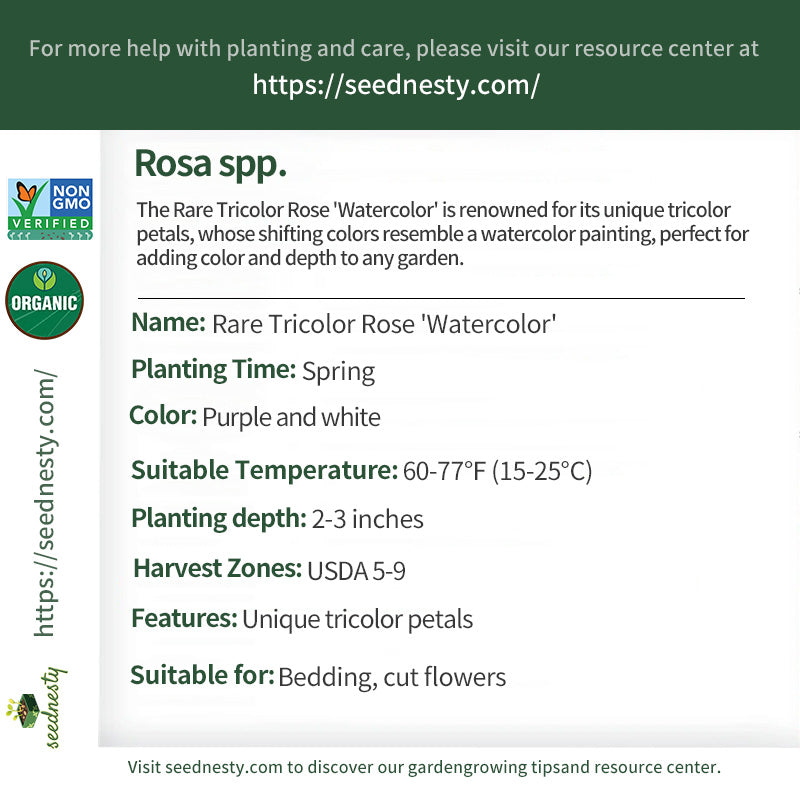 Like a captivating painting, the Rare Tricolor Rose 'Watercolor' captivates anyone who appreciates beauty. Its vibrant petals, like an artist meticulously painting with watercolors, create a breathtaking ombre effect. Each flower is unique, each one telling its own story. Growing this rose is like a conversation with nature, and one anticipates each bloom. Their beauty lies not only in their appearance but also in the inspiration and creativity they bring. The Rare Tricolor Rose is a garden treasure, offering endless opportunities for appreciation and reflection.
