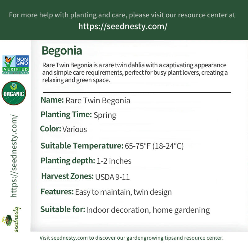 In a tranquil indoor corner, Rare Twin Begonia blooms quietly. These twin dahlias, growing side by side, resemble close friends, sharing sunlight and moisture. Their glossy leaves and vibrant, colorful flowers captivate everyone who passes by. These plants are easy to care for, perfect for a busy lifestyle, allowing you to enjoy the tranquility and beauty they bring even in your busy lives. Seeing them in bloom brings a sense of warmth and joy. Rare Twin Begonia is not only a perfect choice for interior decoration, but also an indispensable companion, allowing you to immerse yourself in the charm of nature and become a focal point in your home.