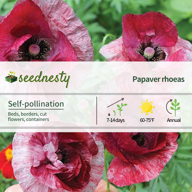 Raspberry Ripple Poppy Seeds - Unique color, self-seeding