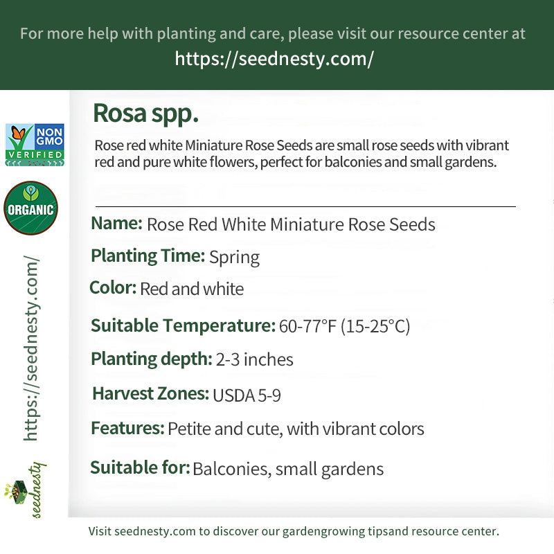 On a sunny day, plant these seeds and wait for them to bloom. Over time, the seedlings grow strong, blossoming into small, charming flowers. The vibrant red and pure white complement each other, resembling a beautiful painting. Each flower exudes a delicate fragrance, captivating those who appreciate beauty. Miniature Roses are not only a garden decoration but also a perfect way to convey love and blessings, suitable for any occasion. Every time I see these flowers in full bloom, I feel the beauty and warmth of life.