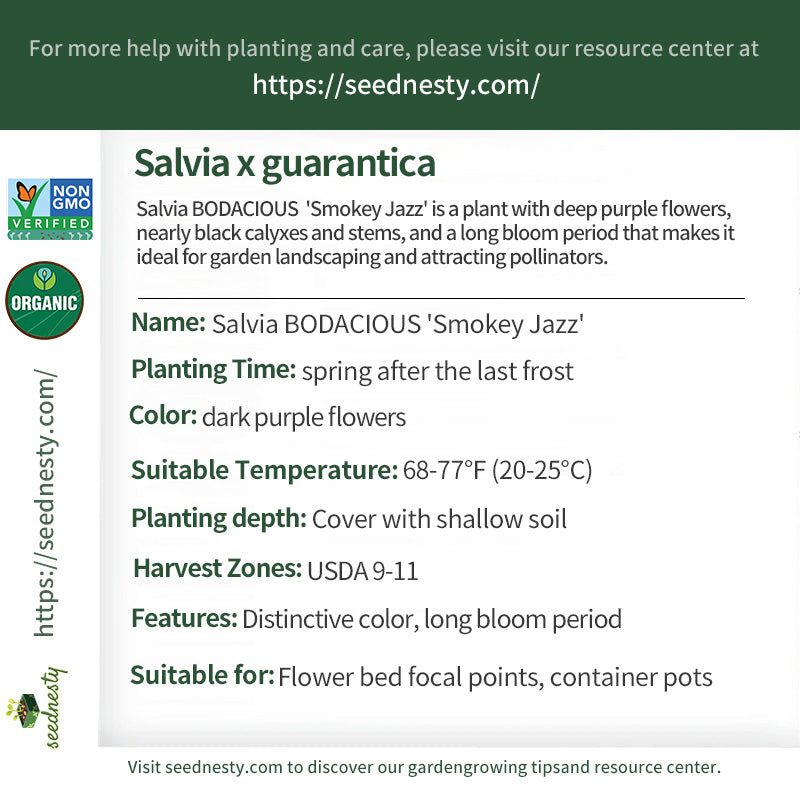 Salvia BODACIOUS 'Smokey Jazz' Seeds - Distinctive color, long bloom period