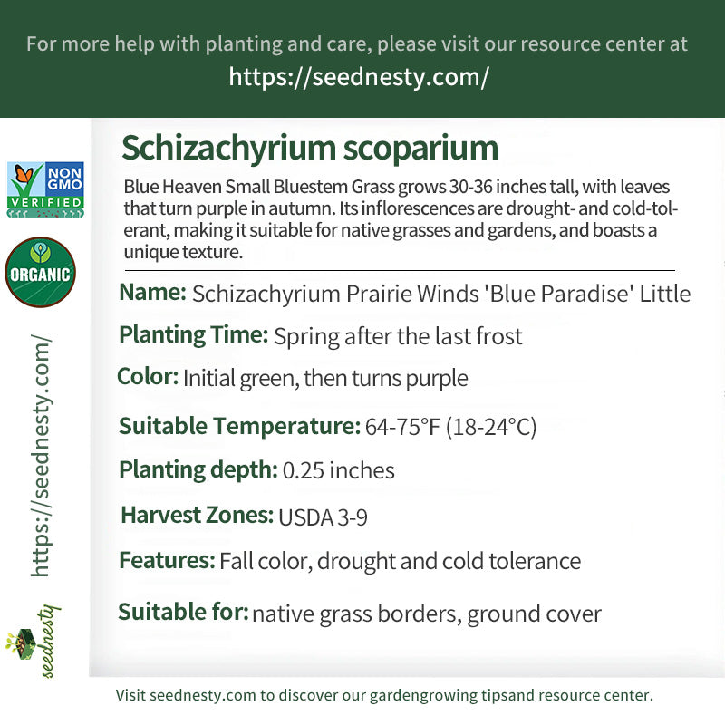 Schizachyrium Prairie Winds 'Blue Paradise' Little Bluestem Seeds