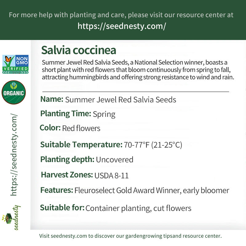 Summer Jewel Red Salvia Seeds - Fleuroselect Gold Award Winner, early bloomer