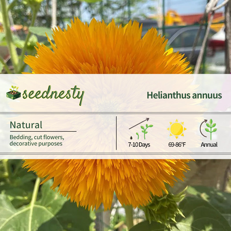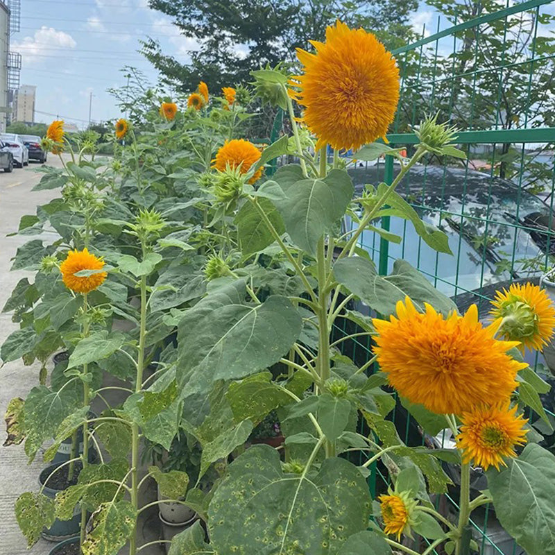 Blooming in the sunshine, their rounded yellow petals and dense blooms resemble warm sunlight, evoking a sense of joy. Imagine strolling through your garden and spotting these adorable sunflowers, and you'll be transported back to the carefree joy of childhood. Their presence instantly brings the garden to life and enchantment, attracting countless bees and butterflies. Teddy Bear sunflowers are not only suitable for flower bed decorations, but can also be used as cut flowers, adding a touch of natural charm to your home. Whenever you see these flowers, you can't help but feel a surge of warmth and happiness, filling your life with color and inspiration.