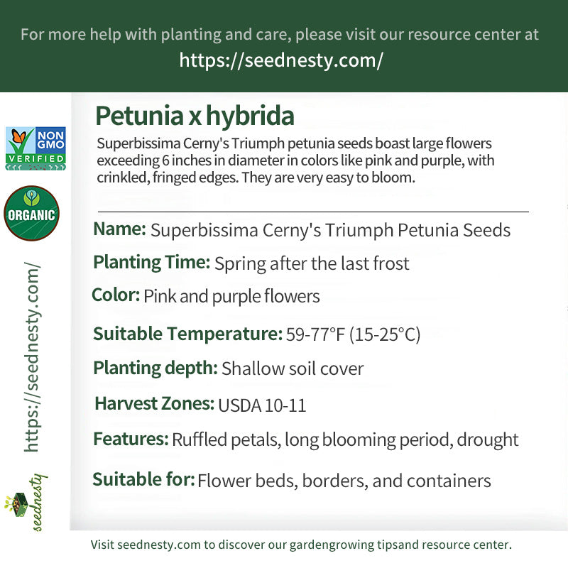 Superbissima Cerny's Triumph Petunia Seeds - Ruffled petals, long blooming period, drought