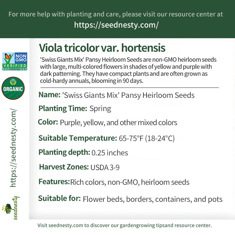 'Swiss Giants Mix' Pansy Heirloom Seeds