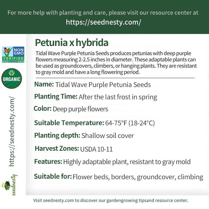 Tidal Wave Purple Petunia Seeds- Highly adaptable plant, resistant to gray mold