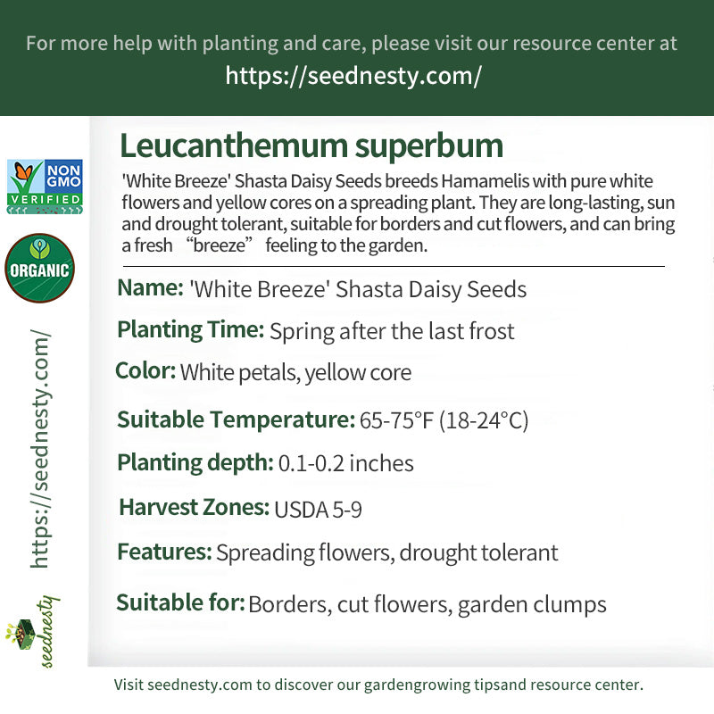 'White Breeze' Shasta Daisy Seeds - Spreading flowers, drought tolerant