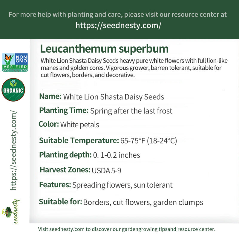 White Lion Shasta Daisy Seeds  - Spreading flowers, sun tolerant