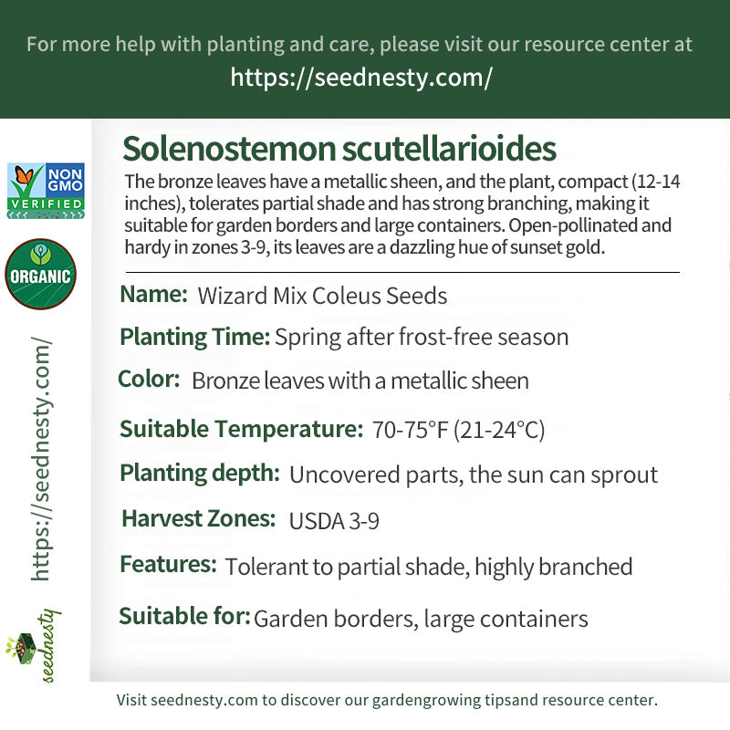 Wizard Sunset Coleus - Tolerant to partial shade, highly branched, leaves resembling red